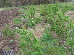 The raspberries and herbs on the perennial side of the main garden