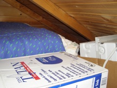 The utility loft where BlackBear had her babies last Friday morning just on the floor where Maya had prepared a place for her at the foot of the bed