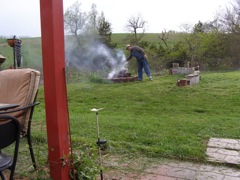 Andre making fire