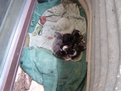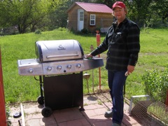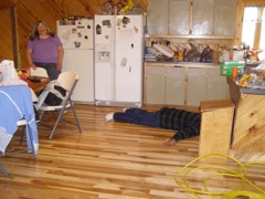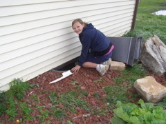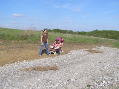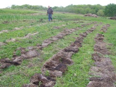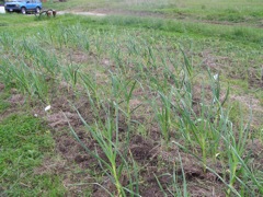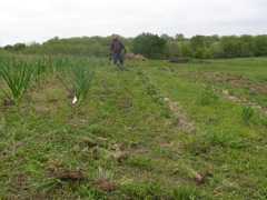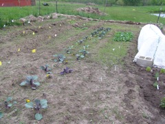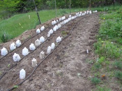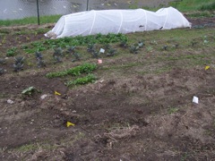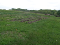 The orange flags mark the outline of the high tunnel to come in the fall.