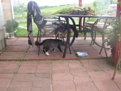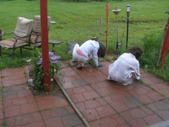 Documented evidence that Maya and Mhairi can do work -- weeding the patio.