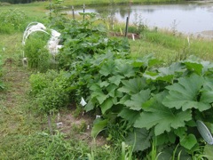 The squash plants looking good and already producing summer squash