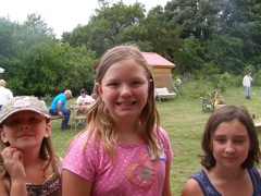Maya and Mhairi visit the Henkeville goats while Liz and Andre shop for herbs and flowers.