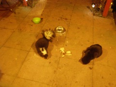 Evening snack, skunk and cat