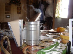 Trying out the bee smoker