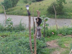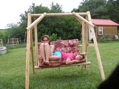 Maya and Andre on the pool rafts with, fortunately, their protective rollover bars